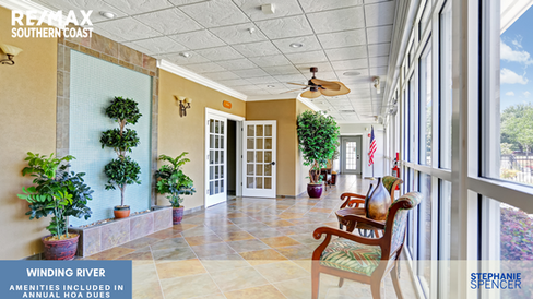 Winding River Plantation is an amenity rich community with a large clubhouse, pool, tennis courts, fitness center, and numerous interest groups/clubs and events.