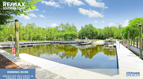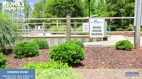 Situated beautifully on the Lockwood Folly River within the gates of Winding River, the Riverhouse Marina offers day docking, a kayak launch, fishing, a picnic area with grill, or just hop in the swing to take in the beauty of the river.